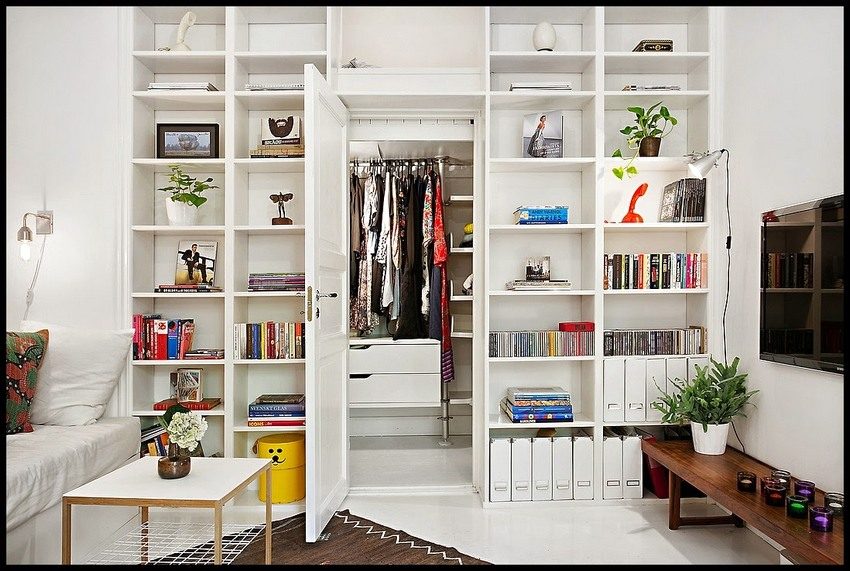 עצה מועילה! בחדרים קטנים עדיף להתקין ארון צר עם גוף ליניארי. עבור החלק האחורי של המבנה, אתה יכול לקנות קיר מחיצה לחדר עם סוג פינתי של מיקום או להשלים אותו עם מדפים פתוחים.