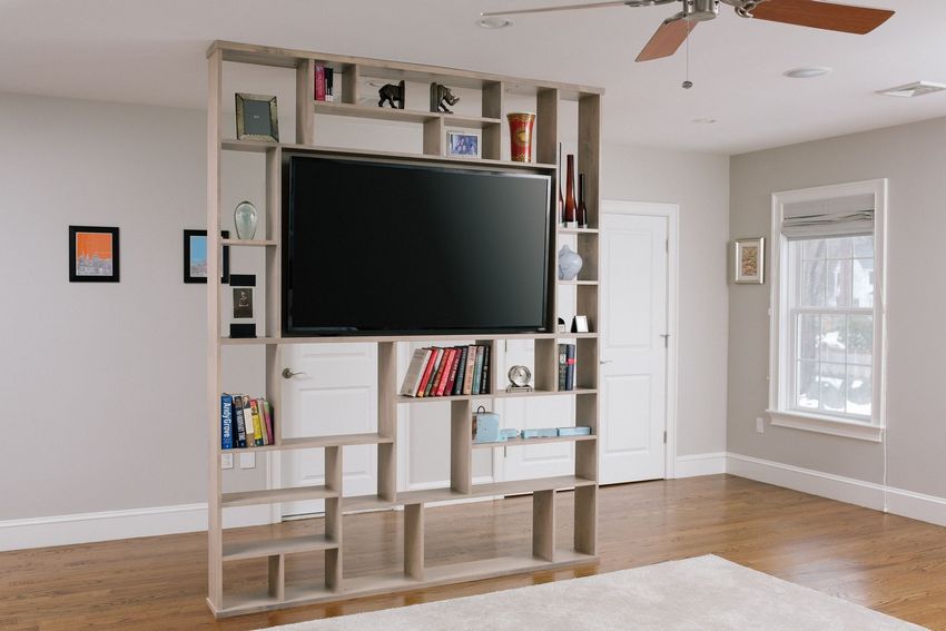 פתרון עיצובי יתרון יהיה להשתמש במחיצה כמעמד לציוד שמע ווידאו. לרוב, טכניקות אלה משמשות להפרדת המטבח והסלון. יתר על כן, ניתן להפוך את הטלוויזיה לשני הכיוונים.