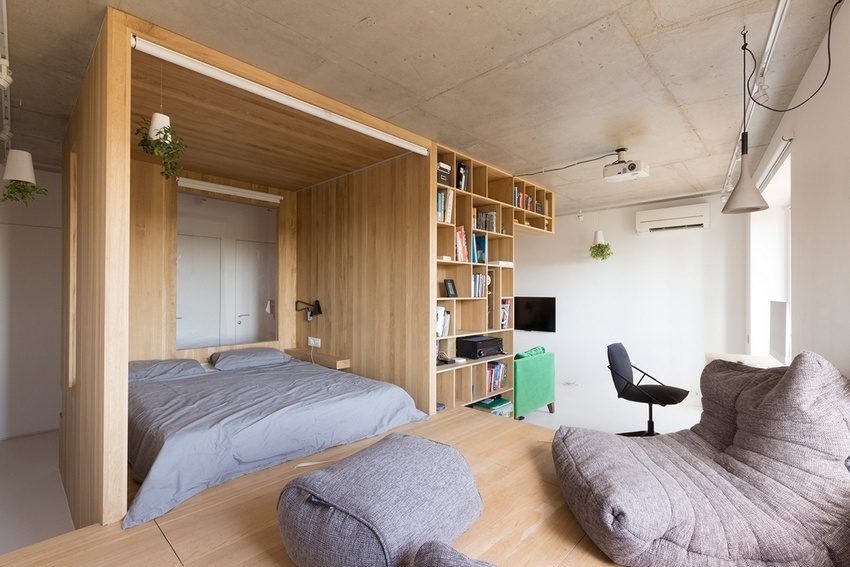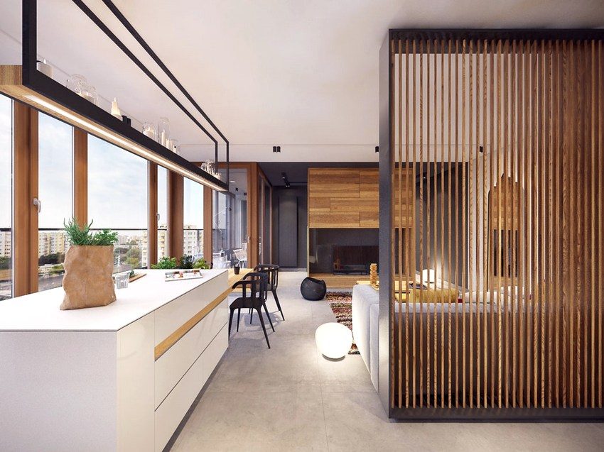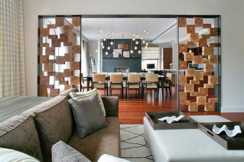 עצה מועילה! מעצבים ממליצים להשתמש במחיצות על בסיס עץ בסטודיו ולופטים מודרניים. סוג זה של חומר ישתלב בצורה מושלמת בעיצוב הפנים של חדר בסגנון אקולוגי.