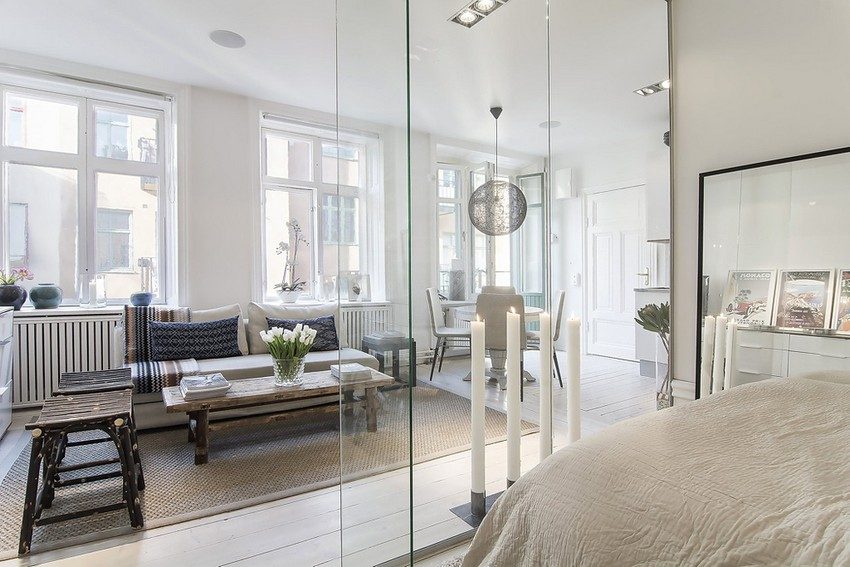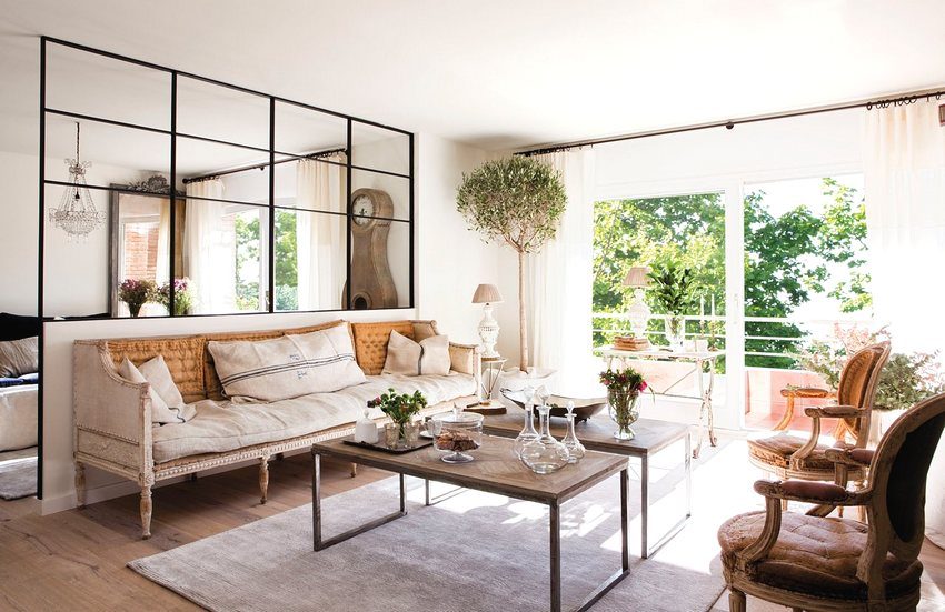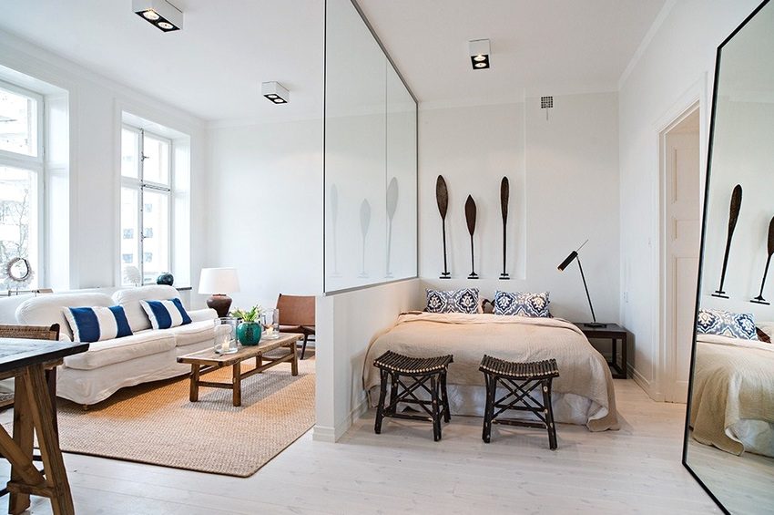 - עלייה חזותית במרחב בחדר קטן - סוגים מסוימים של מחיצות מאפשרים לך להרחיב חזותית את גבולות החדר (מבני מראה);