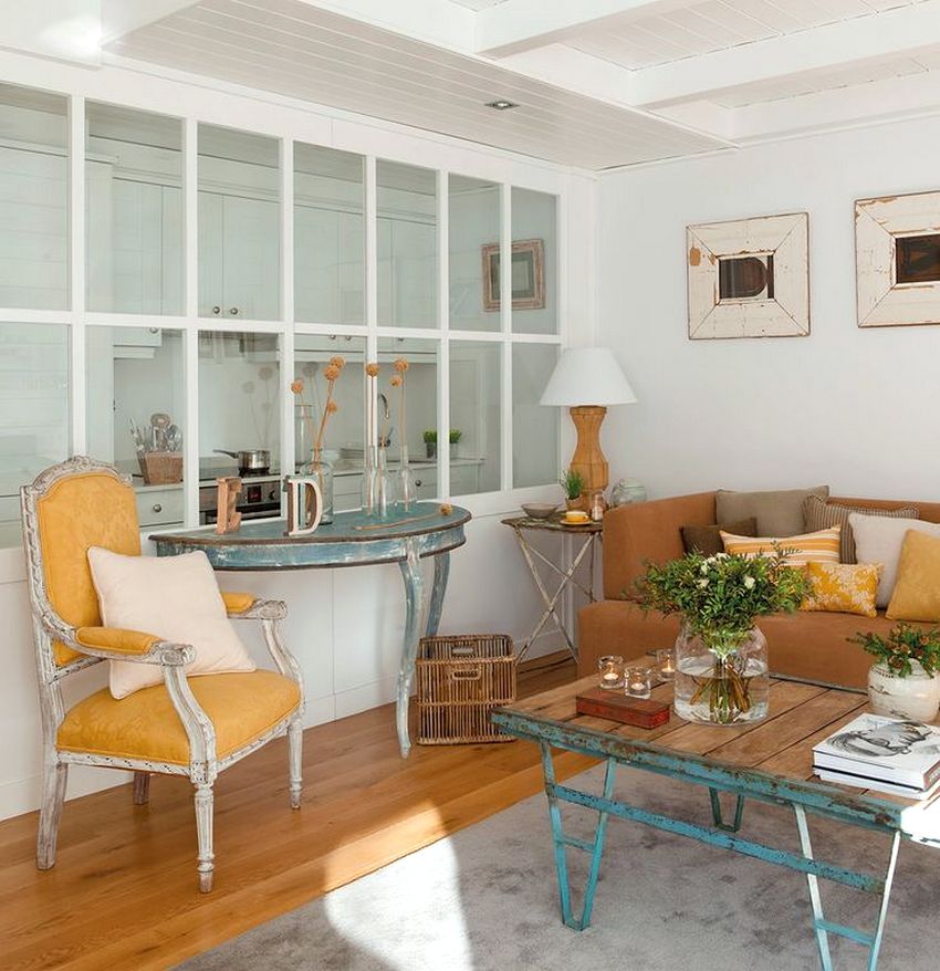 תפקיד המחיצה המפרידה בין חללי המטבח והסלון של בית כפרי אח מגבס