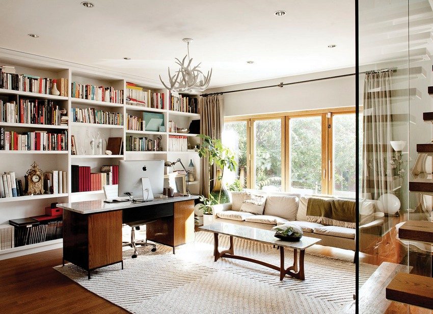 בסלון, מתלה יסייע בארגון משרד מבודד או אזור למנוחה. מהצד של המשרד תוכלו לשים מדפסת, ספרים, ציוד משרדי על המדפים.