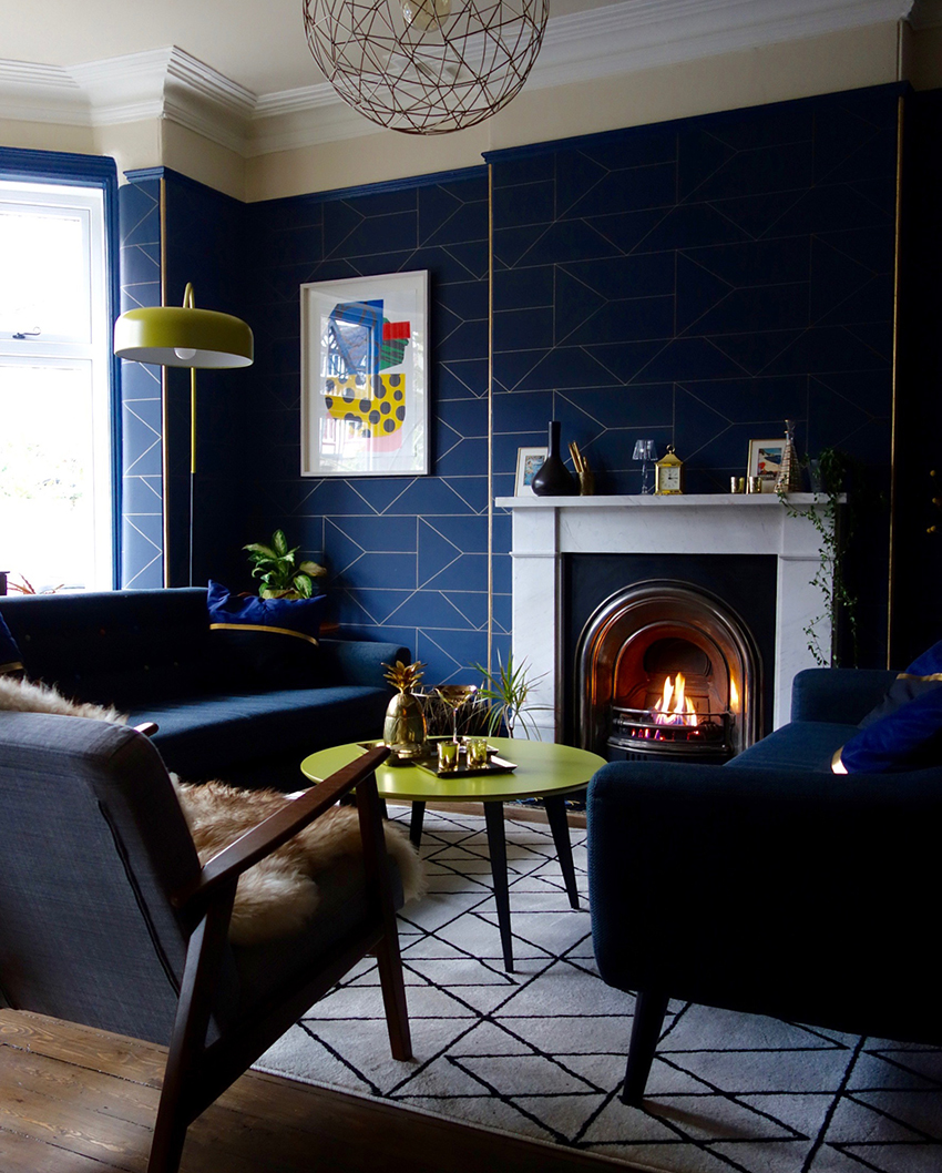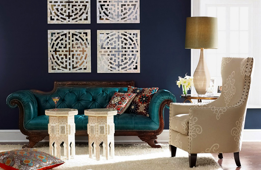 כחול עז יכול להביא תחושת רעננות לחלל הפנים או להפוך אותו לקודר וחסר חיים. זה נקבע על ידי שמירה על הכללים לשילוב צבעים. חלל פנים עשיר אך הרמוני אפשרי על ידי שילוב של גוון כחול בהיר עם גוונים לבנים, חוליים, חלביים ובז '.