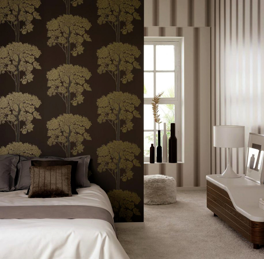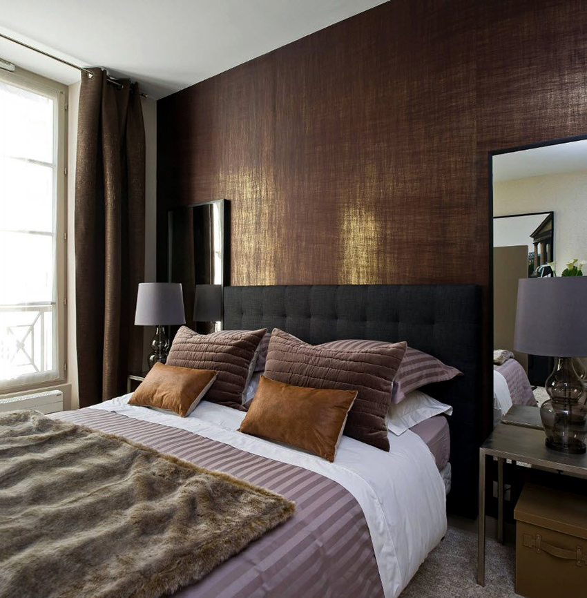 טפט כהה בחדר השינה הוא סימן לתחכום וטעם טוב. ניתן להוסיף גימור זה עם ריהוט בהיר עם ריפודים כהים, כיסויי מיטה וכריות ציפות לכריות נוי, טקסטיל משי או קטיפה לווילונות, אשר נבחרים כמה גוונים בהירים או כהים יותר מאשר הרקע העיקרי של הקירות.