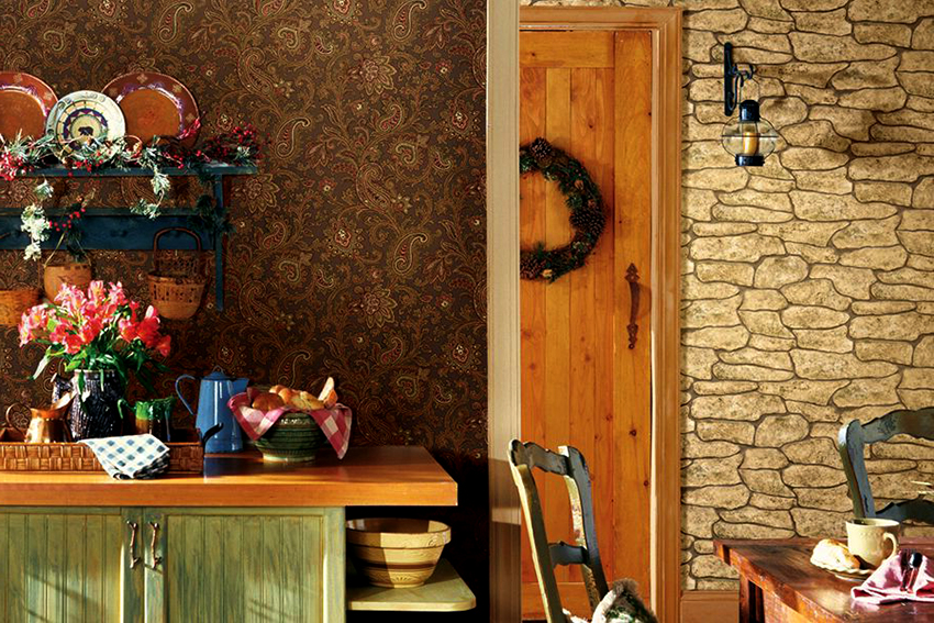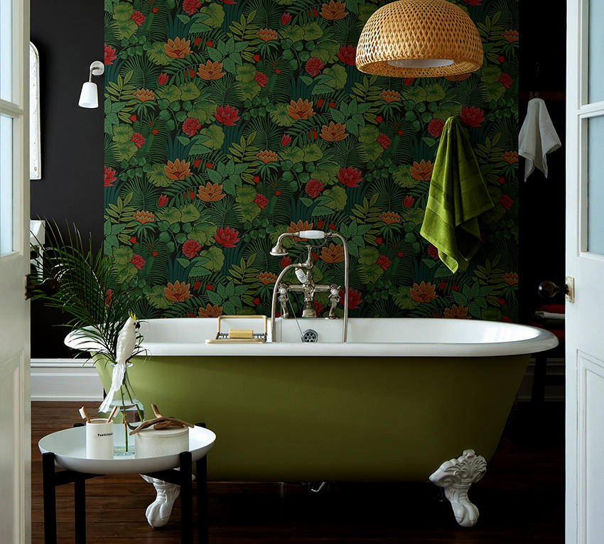 בחללי פנים המגלמים נושאים טבעיים, טפטים ירוקים כהים נראים בצורה הרמונית ביותר, שהם בהרמוניה עם ריהוט עץ טבעי, אבן ואלמנטים דקורטיביים פרחוניים. צבעים כמו לבן, בז ', חול, צהוב, לילך וכחול יעזרו לדלל את האווירה הקודרת. גוונים אלה יכולים לחפוף עם קישוט משטחי הקיר או לבוא לידי ביטוי בריהוט ובטקסטיל.
