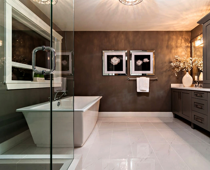 ציפויים חומים על קירות המסדרון נראים הכי מסוגננים וייצוגיים. גוונים כמו שוקולד וקפה עם חלב משתלבים בצורה הטובה ביותר עם ריהוט עץ טבעי. תאורה מסודרת כראוי תעזור לשחק בכל פרט ופרט בחדר, ולהדגיש את חשיבותו בפנים.