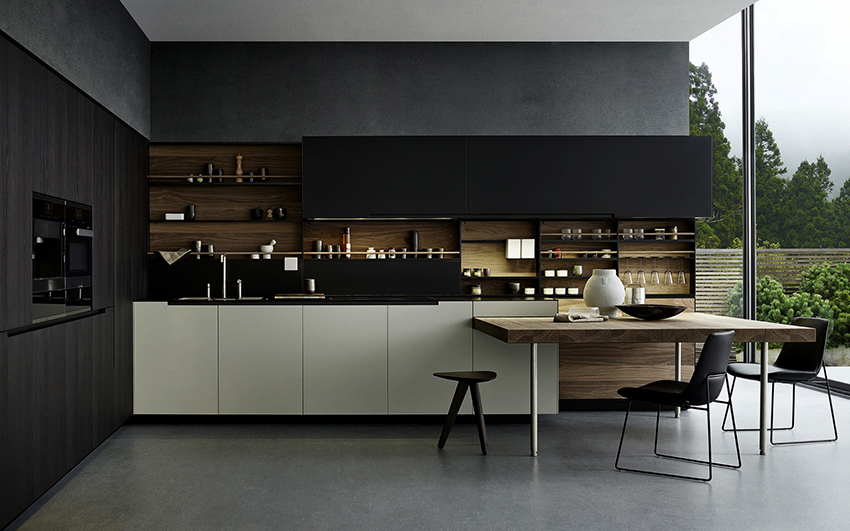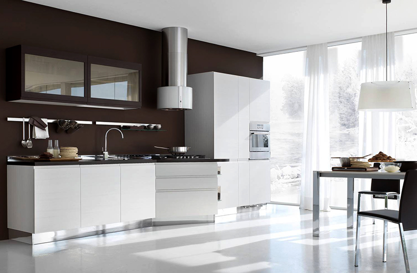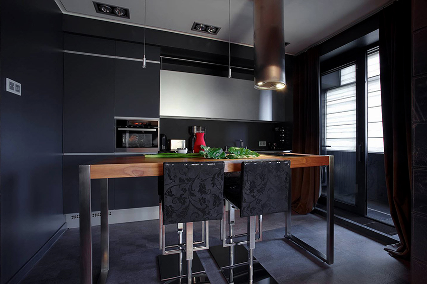 המראה המשתלם ביותר הוא קירות כהים בפנים המטבח בסגנון המינימליזם, בו משתמשים במשטחים ופרטים מבריקים, אלמנטים כרום.טפט שחור עם פסים אפורים או חומים בשילוב עם נירוסטה או כיריים מזכוכית מלוטשת נראה מעניין. מקרר גדול עם דלתות אלומיניום מלוטשות ומכשירים ביתיים אחרים העשויים מחומרים דומים נכנסים בצורה הרמונית למעצור כזה.