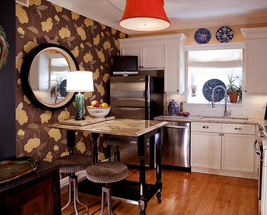 עצה מועילה! השימוש בטפט כהה לקישוט הקירות במסדרון, בחדר האמבטיה או במטבח מסייע בהגנה על משטחים מפני זיהום מוגזם לעין.