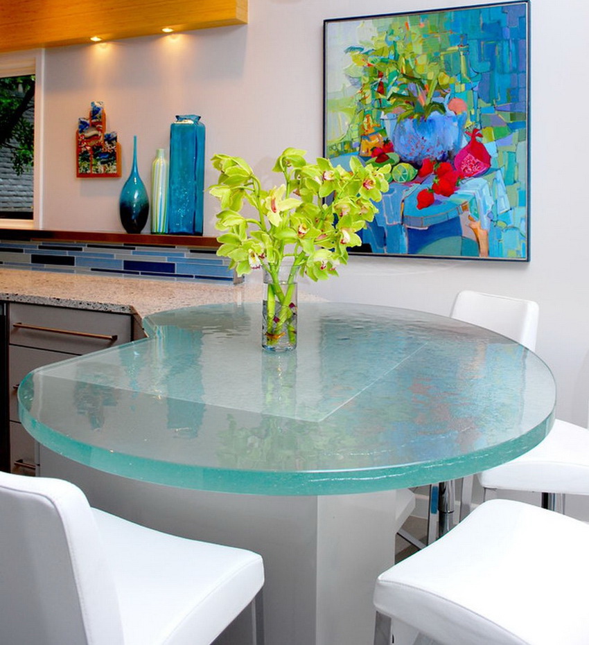 Neseniai apvalaus stiklo stalai virtuvėje įgijo ypatingą populiarumą. Stalviršių gamybai naudojamas grūdintas stiklas, kuris yra patvari medžiaga, atspari mechaniniam įtempimui, ir net įskilusi ji suskaidoma į švelnius fragmentus, pašalinant traumų galimybę.