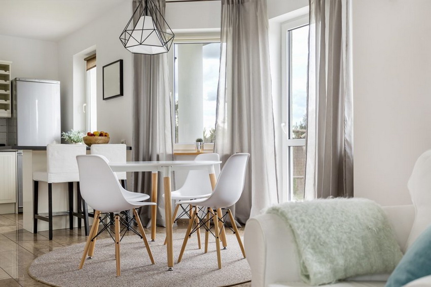 Naudingi patarimai! Dizaineriai primygtinai nerekomenduoja pasirinkti valgomojo stalo modelio, sumontavus darbinius paviršius, spinteles, pieštukų dėžutes ir naktinius stalelius.Tai neišvengiamai sukels situaciją, kai kažkas, kas tinka kambaryje, yra paprasčiausiai perkama, neatsižvelgiant į bendrą interjero stilių.