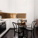 Mažoje virtuvėje pastatyti apvalų stalą yra be galo sunku. Labiausiai tikėtina, kad turėsite sutaupyti vietos kitų baldų sąskaita. Jei pastatymo ploto matmenys yra 220x220 cm arba šiek tiek mažesni, priimtiniausias variantas yra apvalaus stalo skersmuo virtuvėje 80 cm.