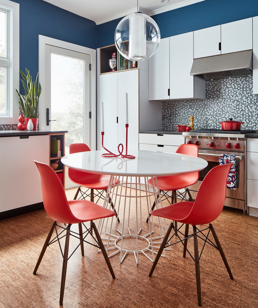 Atsargiai ir apgalvotai turite kreiptis į apvalaus balto stalo įsigijimą virtuvėje. Tokia spalva, lengvai derinama su bet kokiais kitais atspalviais, šiuo atveju tampa reikli ir griežta kaimyninių spalvų schemos atžvilgiu.