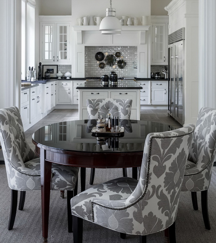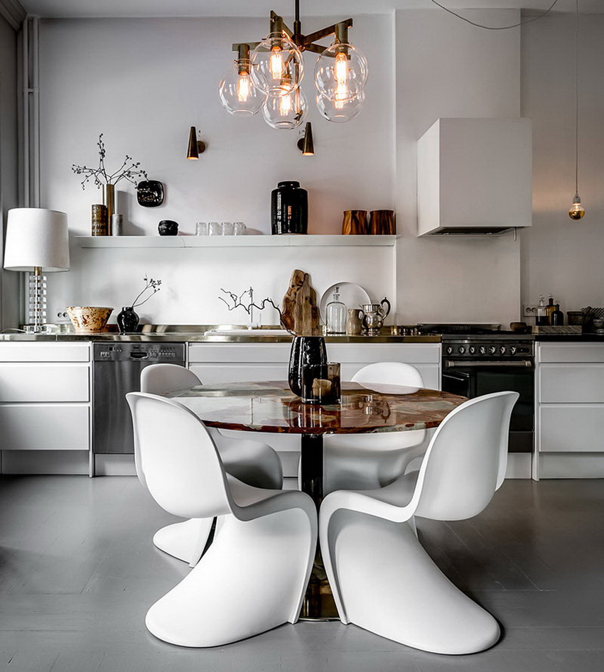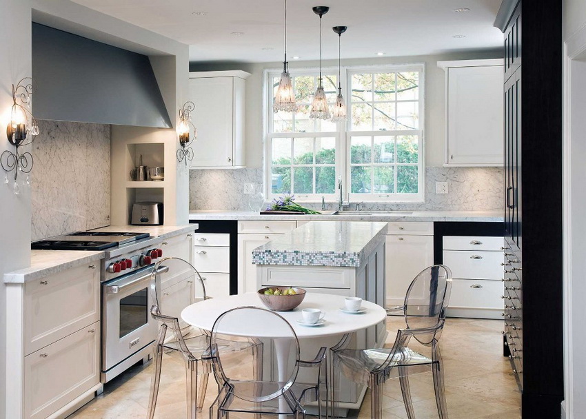 Baltas apvalus stalas virtuvei: reiklus ir puošnus