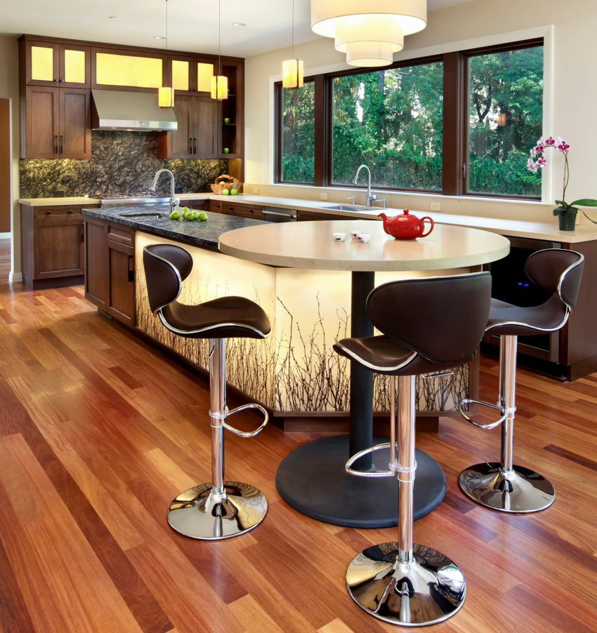 Apvalus stalas virtuvės interjere: apgyvendinimo ypatybės