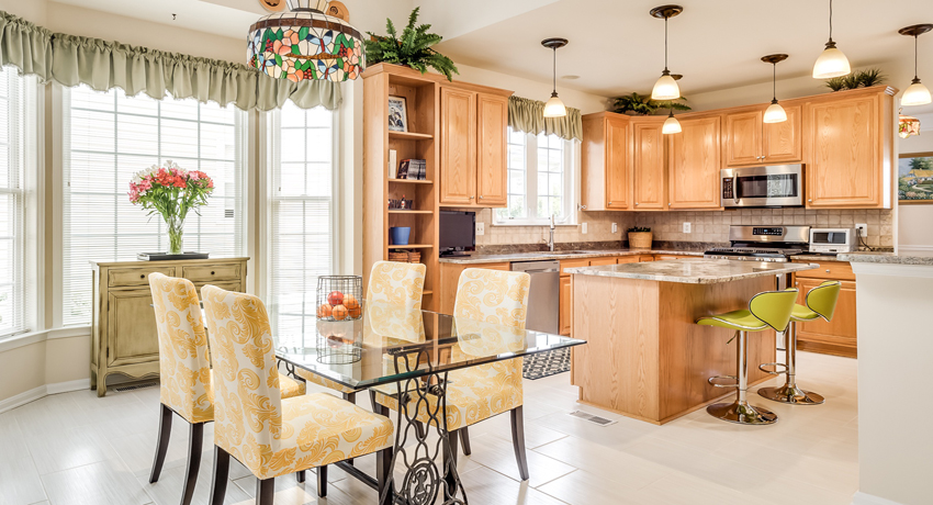 - valgomojo stalo spalva neturėtų ryškiai kontrastuoti su likusiais baldais ir sienų spalvų gama, kad nebūtų pabrėžtas mažas šio baldo dydis;