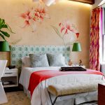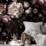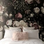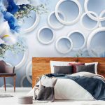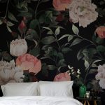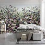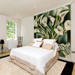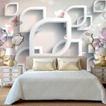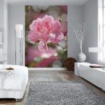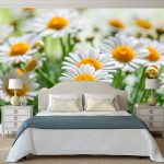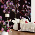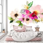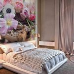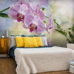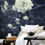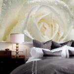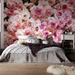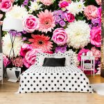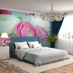 Gėlės ant fototapeto miegamajame virš lovos: patrauklaus dizaino nuotraukos