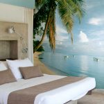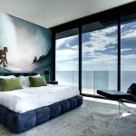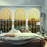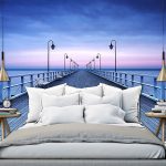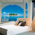 - Lango šonuose įklijuodami sienų freskas, vaizduojančias balkoną, terasą ar laivo denį, galite sukurti begalinės erdvės efektą ir suteikti miegamajam išskirtinumo.