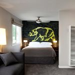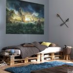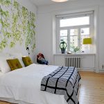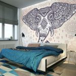 Naudingi patarimai! Jei projektuojant kambarį sienai virš lovos dekoruoti naudojamas piešinys, nėra prasmės rinktis per tankius tapetus, nes šioje vietoje žalos rizika yra minimali. Vienintelė išimtis yra fototapetų klijavimas virš vaiko lovos, šiuo atveju geriau nusipirkti plaunamų variantų. Storesnes drobes taip pat reikėtų rinktis butui, kuriame yra apsikabinę augintiniai.