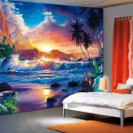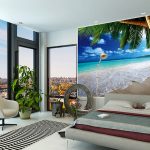 Fototapetai miegamajame: produktų pasirinkimas atsižvelgiant į spausdinimo būdą ir formato pasirinkimą