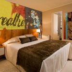 - Pop menas. Puikus jaunimo miegamojo papildymas yra nespalvoti fotomuralai su populiarių asmenybių nuotraukomis, vaizduojančiomis paplūdimio diskotekas ar klubus.