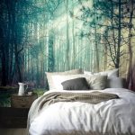 - 1 Fototapetų naudojimo miegamajame ypatybės: nuotrauka interjere
