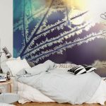 - Dideliame miegamajame, kuriame, be lovos, nėra matmenų objektų, galite parodyti daugiau vaizduotės ir klijuoti freskas vaizdais, pagamintais naudojant makrofotografiją. Nerekomenduojama naudoti mažų nuotraukų didelėje atviroje patalpoje, kuri pasiklys erdvėje.