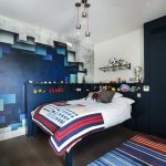 - Už lovos. Tai laikoma priimtinu variantu, todėl kaip fono paveikslėlis nebus nuolat matomas vaiko akyse ir negali greitai nuobodžiauti. Šiuo atveju geriau nepriklijuoti ryškios drobės.