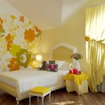 Fototapetai, kuriuose naudojamos geltonos ir oranžinės spalvos, į miegamąjį įneš komforto, šilumos ir saulės šviesos. Didelės geltonos gėlės ypač gražiai atrodo dideliame židinyje su rasos lašais tamsesniame fone. Geltonų kiaulpienių laukas žalios žolės fone su ramunėlėmis, paryškintomis centre, bus tinkama akcento detalė. Tokie tapetai greitai nenuobodžiaus ir teigiamai paveiks nuotaiką.