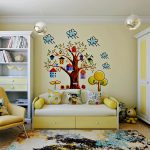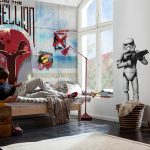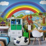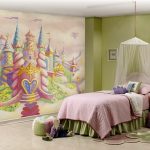 - 6-12 metų. Šiame amžiuje vaikas jau gali visapusiškai dalyvauti kuriant kambario interjerą. Paprastai jie pasirenka mėgstamus animacinių filmų ar komiksų personažus. Merginos labiau mėgsta pilių ir princesių atvaizdus, o berniukai - automobilius, traukinius, laivus ar dinozaurus. Šiuo atveju tinka ir peizažai.