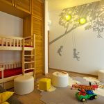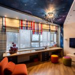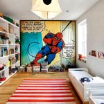 - Žaidimų zonoje. Čia tikslinga pasirinkti tiek ramias, tiek margas drobes, kurios atitiks pramogų zonos nuotaiką.