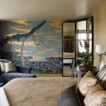- Mažame kambaryje, kur baldai yra tankiai išdėstyti, geriausias sprendimas yra ant sienos naudoti fototapetus, vaizduojančius panoramas, trimačius paveikslus su įdubomis ar tolimus daiktus.Tokiu būdu pasirodys, kad atitrauks dėmesį nuo mažo ploto ir pridės trūkstamą tūrį į kambarį.