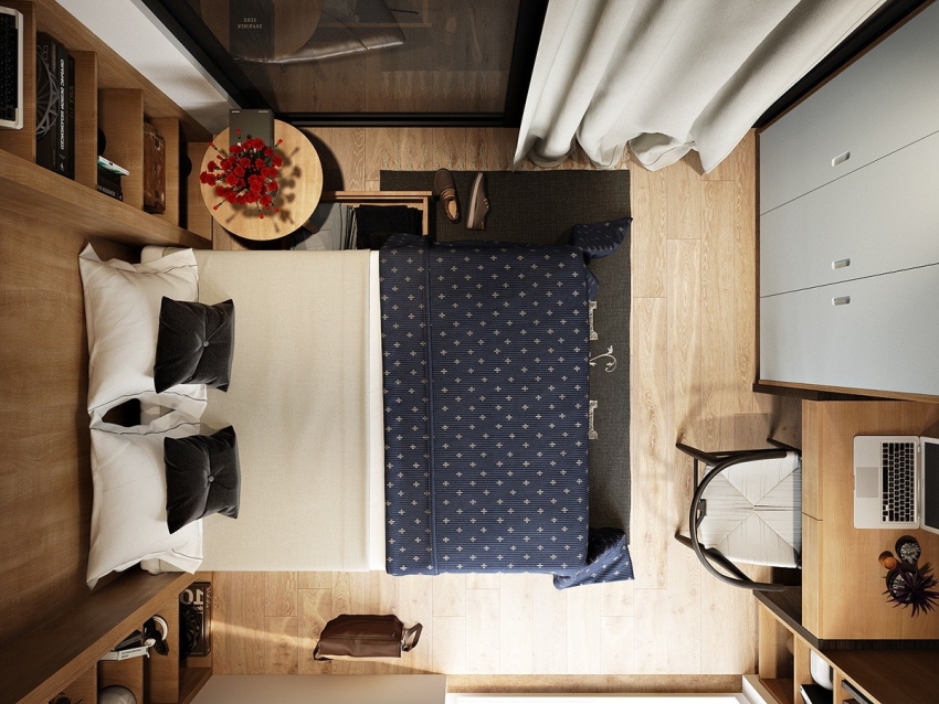 Reka bentuk bilik tidur kecil 12 sq.m: gambar dalaman dan penempatan perabot