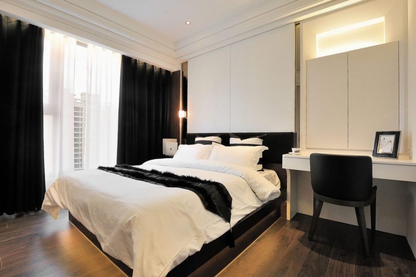 Bilik tidur moden dengan meja kecil untuk rawatan kecantikan