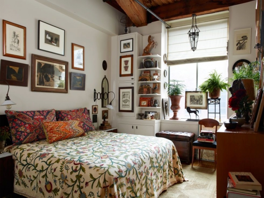 Warna terang dan hiasan yang melimpah dalam reka bentuk bilik tidur kecil