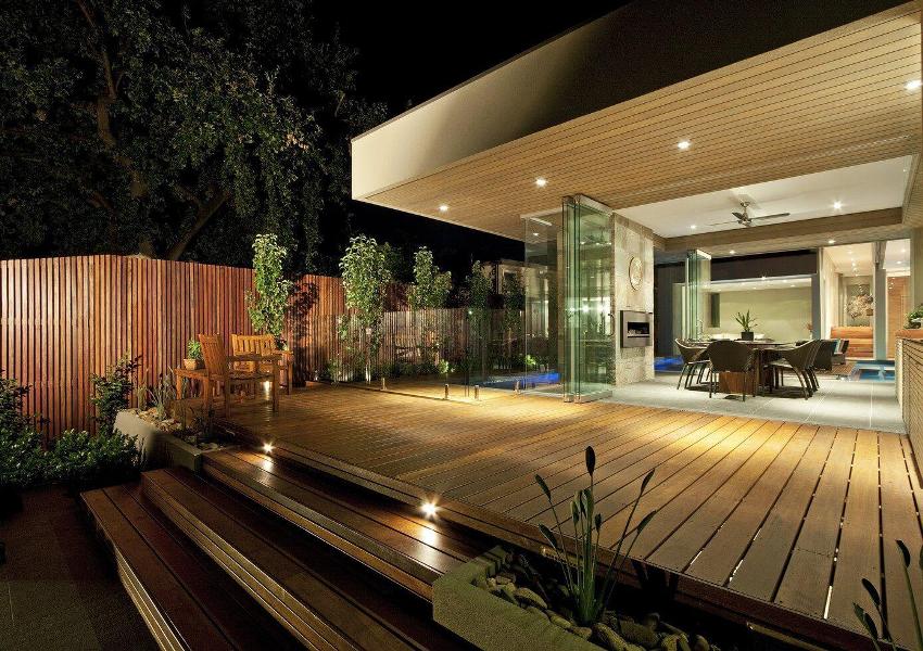 - På en veranda med stigning er det best å lede belysning slik at du ikke ved et uhell snubler når du klatrer i mørket.