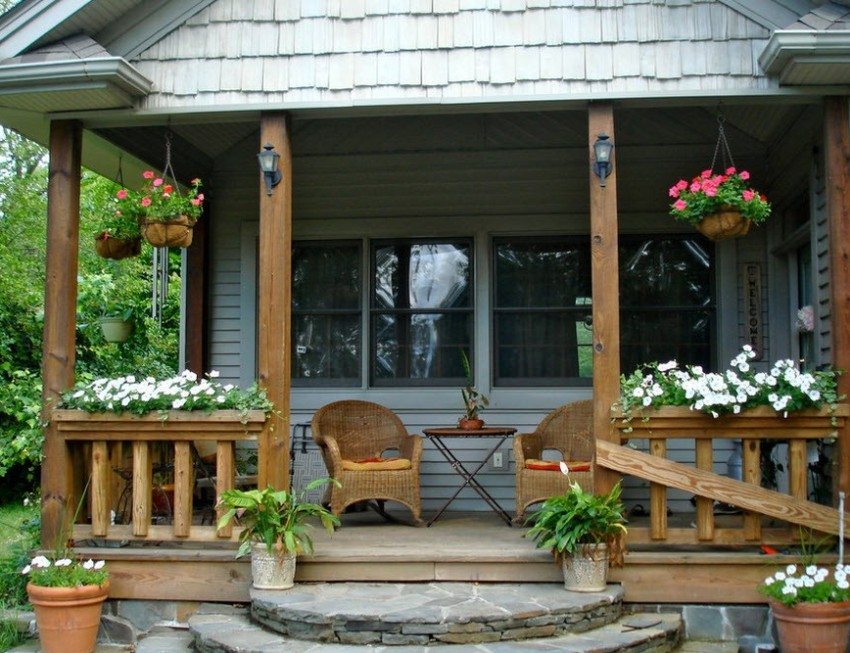 For å opprettholde fasadens overordnede stil, trehus det anbefales å feste en veranda laget av tre. Denne metoden anses å være billigere, siden moderne materialer, selv om de er enkle å bruke, er ganske dyre. For å lage en veranda av tre trenger du: