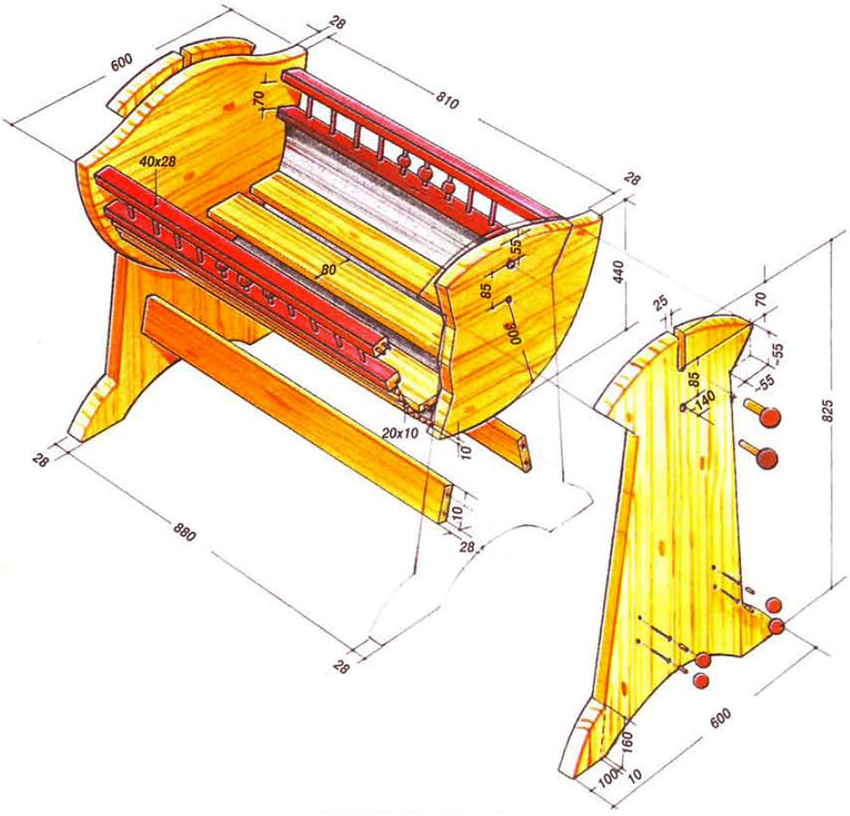 I dag er det detaljerte tegninger på internett med dimensjonene til forskjellige design for baby senger. Å ha minimale ferdigheter og ha et stort ønske om å behage barnet ditt, kan du lage en unik sovesofa med egne hender.