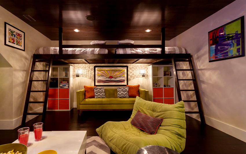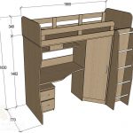 Loftet er ansett som mer funksjonelt. Soveplassen ligger ovenpå. Under det kan du organisere et fullverdig lagringssystem ved å plassere en kommode, garderobe eller hyller. Opprettelsen av en slik struktur krever ferdigheter og evner i møbelproduksjon. For to barn kan du lage en to-lags struktur, hvis opprettelse også krever viss erfaring fra mesteren.