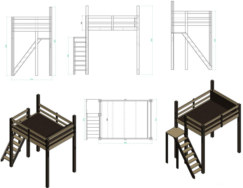 Produksjon av en struktur fra 3 år med sider: loftseng for barn