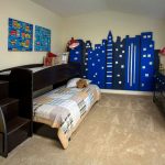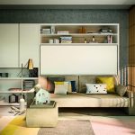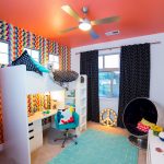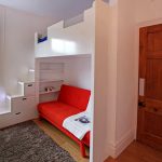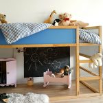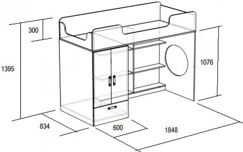 I den frie plassen som er dannet under gjør-det-selv-hemsengen, kan du få plass til en romslig garderobe. Dørene er best plassert på siden av strukturen. Den andre veggen i dette tilfellet vil være en ekstra støttepunkt. På den gjenværende ledige plassen kan du installere et stativ med åpne hyller eller et skrivebord. Barnesenger med skuffer er veldig populære, som fyller det nedre rommet under køya.