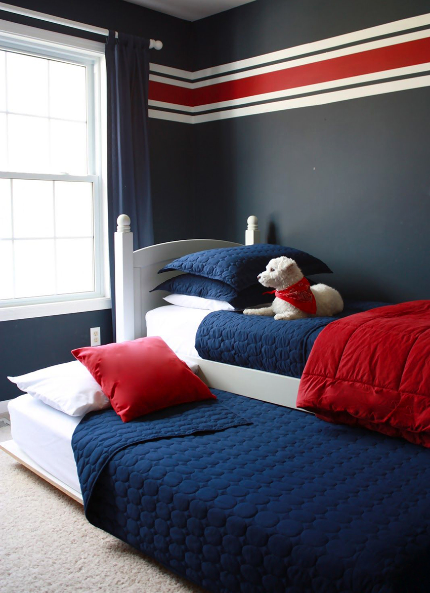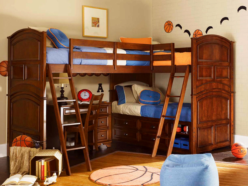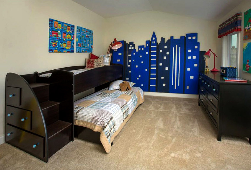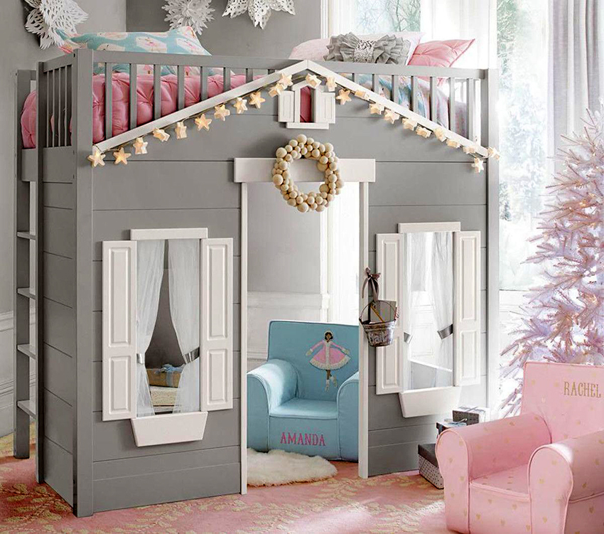 For to barn er det beste alternativet køyesenger... Høyden på strukturen når 1,5-1,8 m, som avhenger av takets høyde i rommet. De ytre dimensjonene til soveplassene kan være forskjellige. Sengene, som ligger i andre etasje, har dimensjoner på 80x200 eller 90x200 cm. Køyene i underetasjen kan være kortere med 20-30 cm.