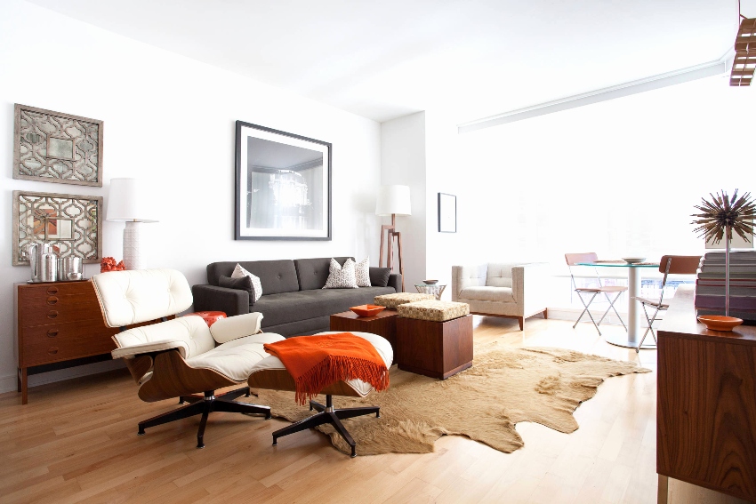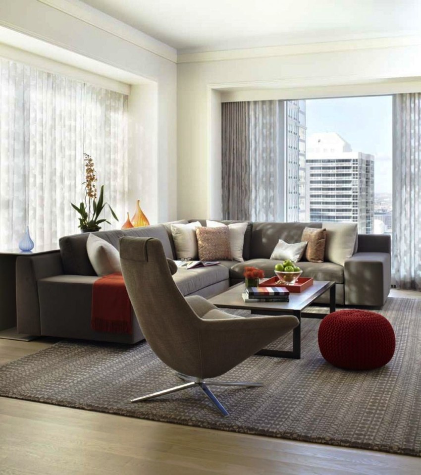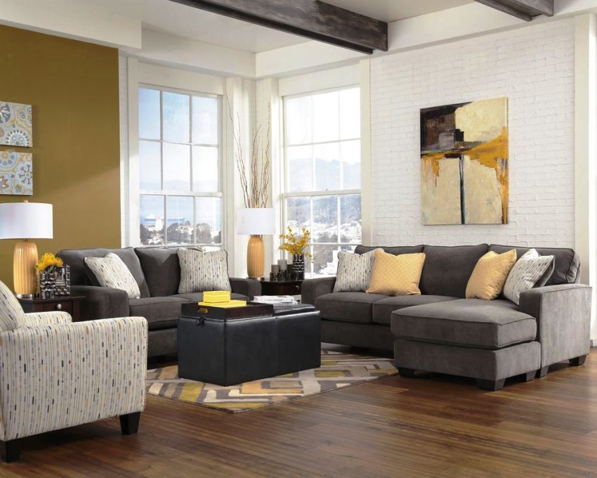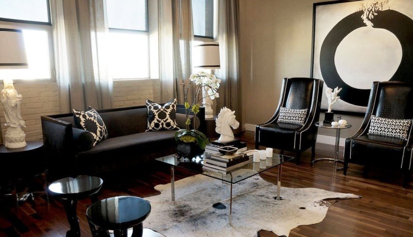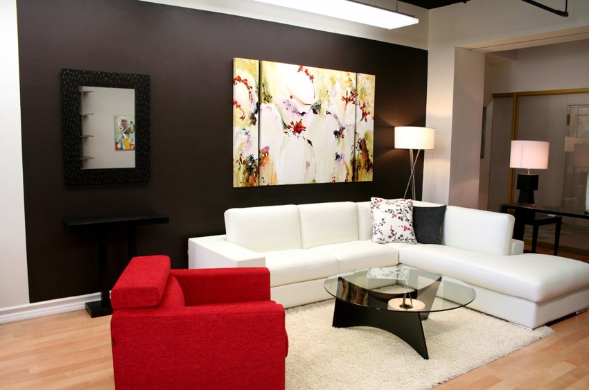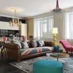 Det sikreste alternativet er et design som er basert på fargespill. Det er ikke nødvendig å matche fargen på sofaen til tonen på gulvet eller veggene. Det er bedre å ta en modell som vil være flere nyanser lysere eller mørkere.
