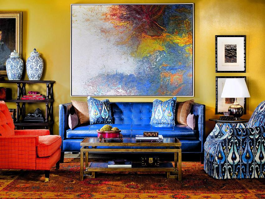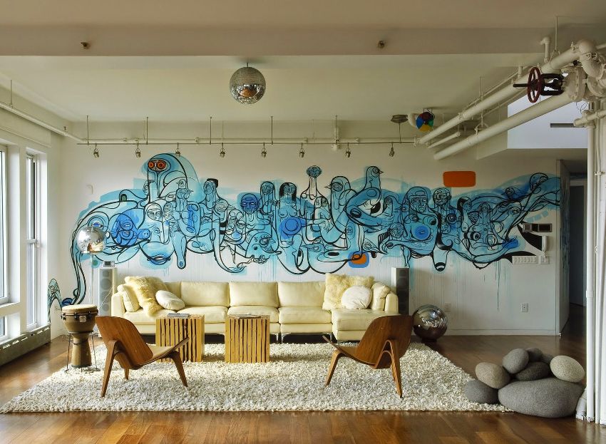 Hvordan slå en vegg over en sofa i et interiør i stuen
