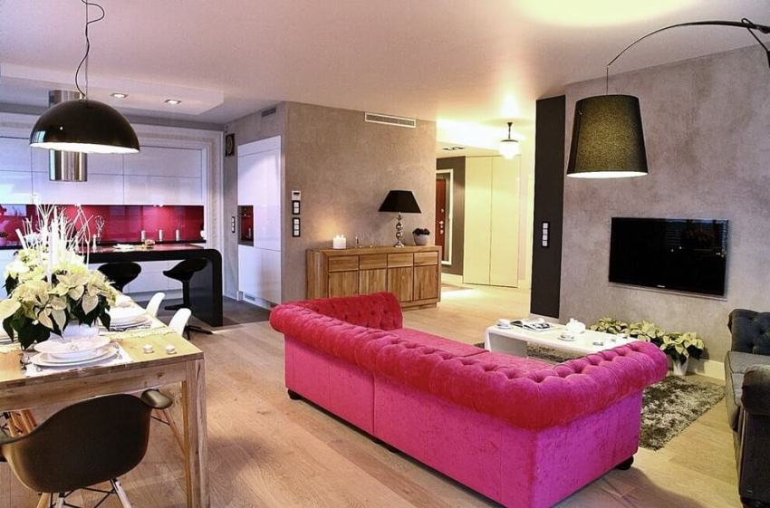 Nyttige råd! Sofaen kan brukes til å dele opp rommet. Disse reguleringsteknikkene brukes ofte i et-roms leiligheter og studioer med åpen planløsning.