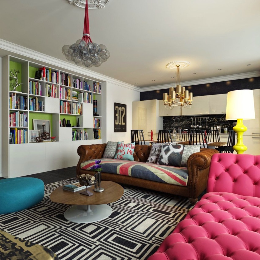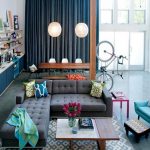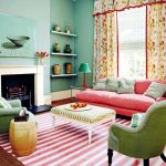 Stilige stue sofaer i livlige farger som oransje, grønn eller rød kan brukes til å skape aksenter i interiøret. Røde nyanser fungerer bra med gull, og gult ser flott ut omgitt av lilla, grå eller blå. Grønt eller blått vil være et flott tillegg til oransje.