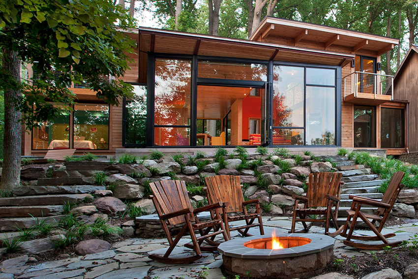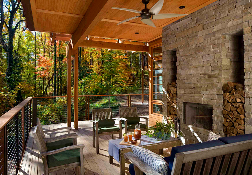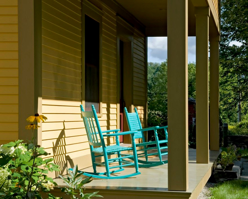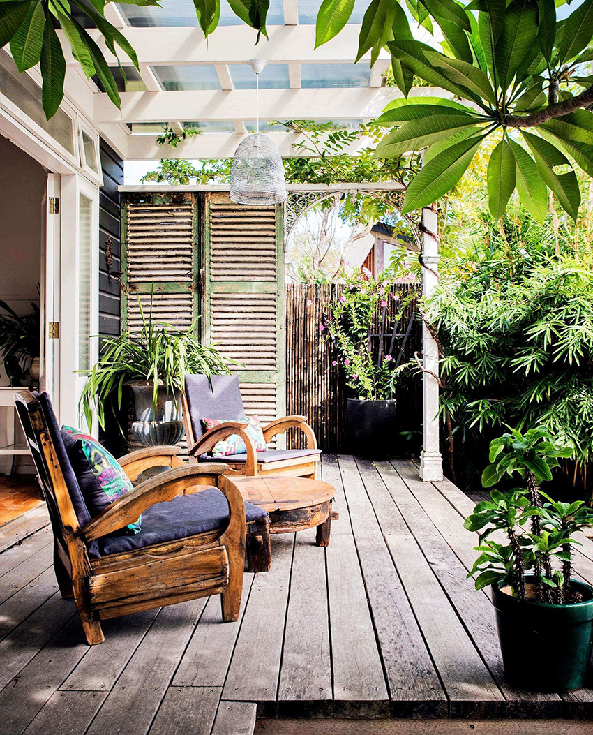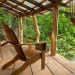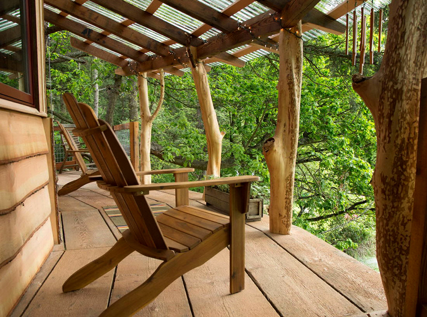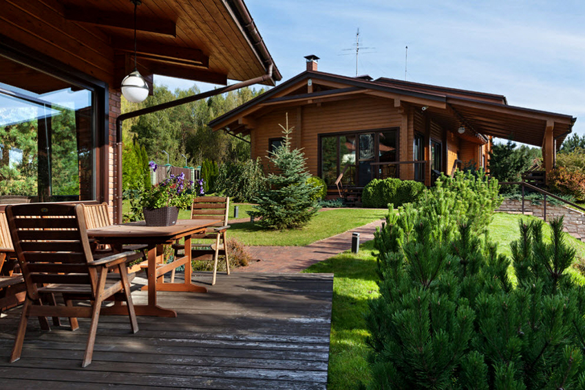 Det mest organiske blant de lyse blomstrende plantene i hagen ser ut som en stol laget av tre. Det er praktisk å slappe av i det, nyte den friske luften og den omkringliggende naturen. Interiør av tre er komfortable, pålitelige og miljøvennlige møbler. Sammenleggbare stoler til sommerhytter er også en god ide for små rom. I tillegg er slike produkter praktisk å lagre når de ikke er i bruk.