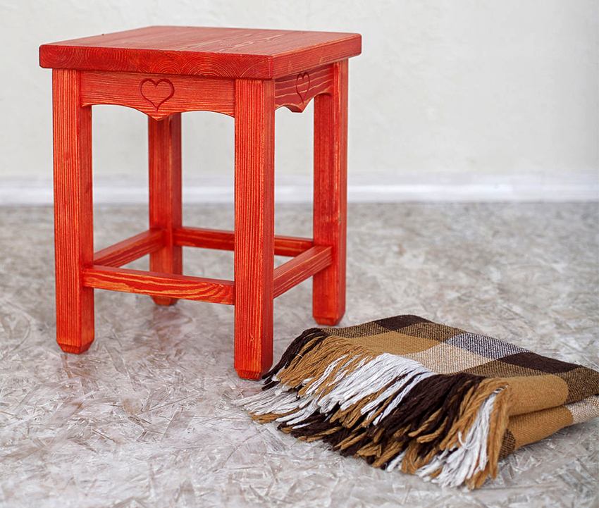 - kutt en pall i to deler på halvparten: den første delen vil tjene som rygg, den andre som stolstol;