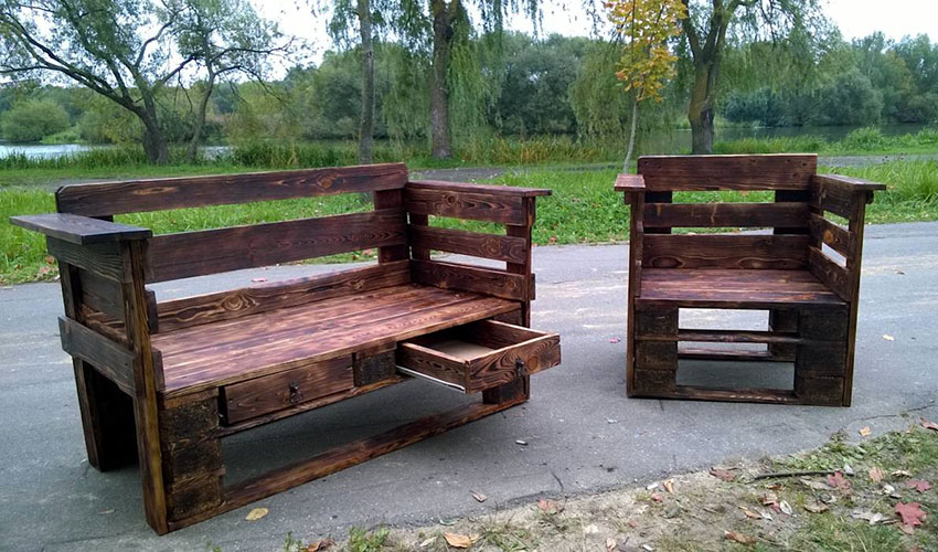 For å lage en stol trenger du to paller og de vanligste verktøyene. Produksjonsprosessen består av følgende trinn: