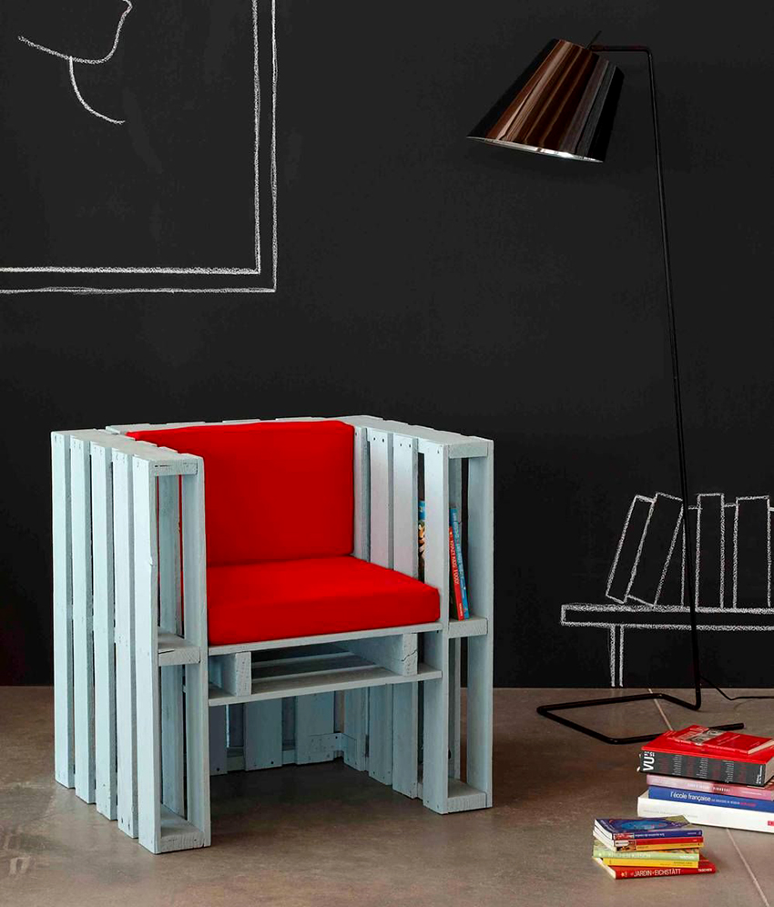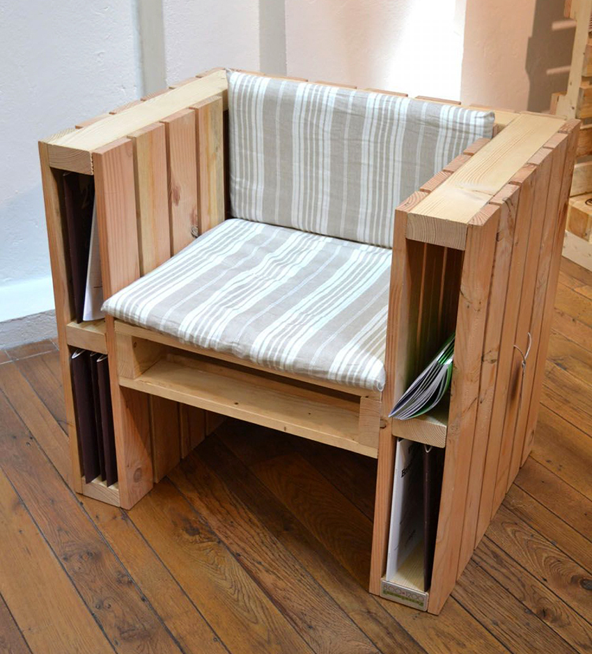 Trepaller er ferdige deler som må behandles og kombineres i en enkelt struktur. Det er ganske enkelt å bygge en stol, sofa og til og med et bord fra dem. Du kan male den ferdige strukturen, kaste et teppe over den, et par puter, eller velge et annet design som harmonisk vil kombinere med interiøret.