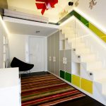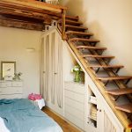 Innebygde produkter utfyller perfekt selv det mest uvanlige interiøret. Slike møbler ser helhetlig ut i kombinasjon med en trapp, som kan være spiralformet eller marsjerende.